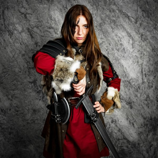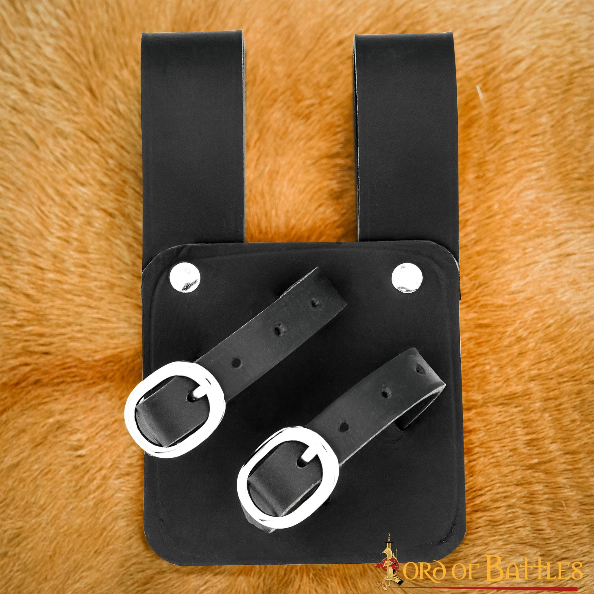 Con uno spessore di 3-3,3 mm, questo baldric offre la protezione necessaria per le tue spade o asce, mantenendole saldamente in posizione. Il suo paio di cinture e fibbie sono altamente regolabili, permettendoti di usarlo con diversi manici o larghezze di lama.
