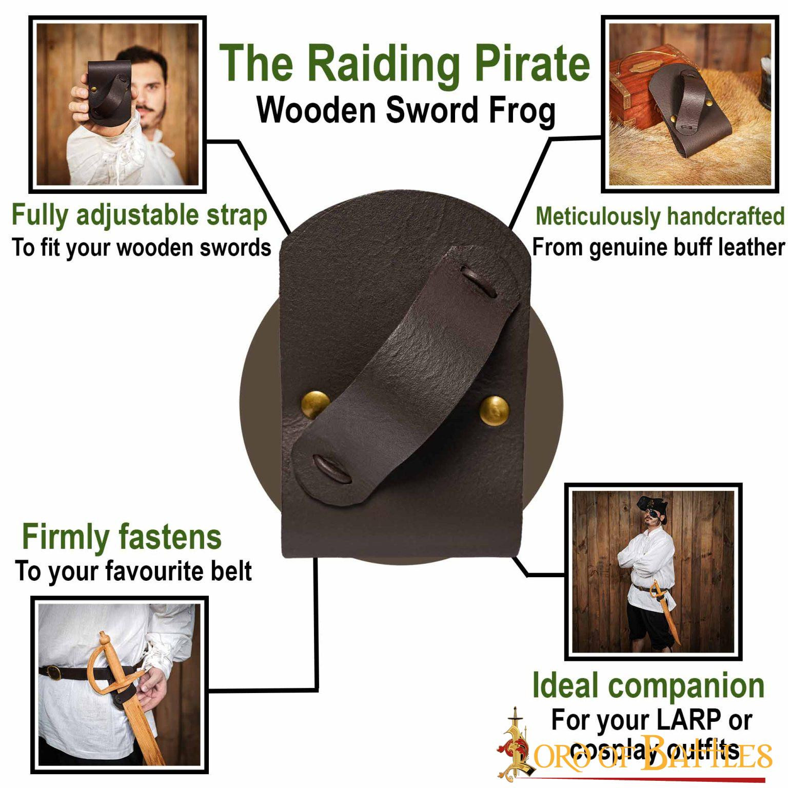 Baldric per spade di legno in cuoio - Marrone (13x8 cm.)