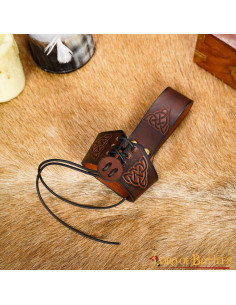 Preparati a immergerti nell'autenticità e nello stile con la nostra bandoliera in corno realizzata a mano, progettata con un intricato nodo celtico e arricchita con dettagli squisiti in una calda tonalità marrone! Questo accessorio non solo terrà il tuo corno da idromele, ma aggiungerà anche un tocco di eleganza alle tue giostre e ai tuoi raduni.