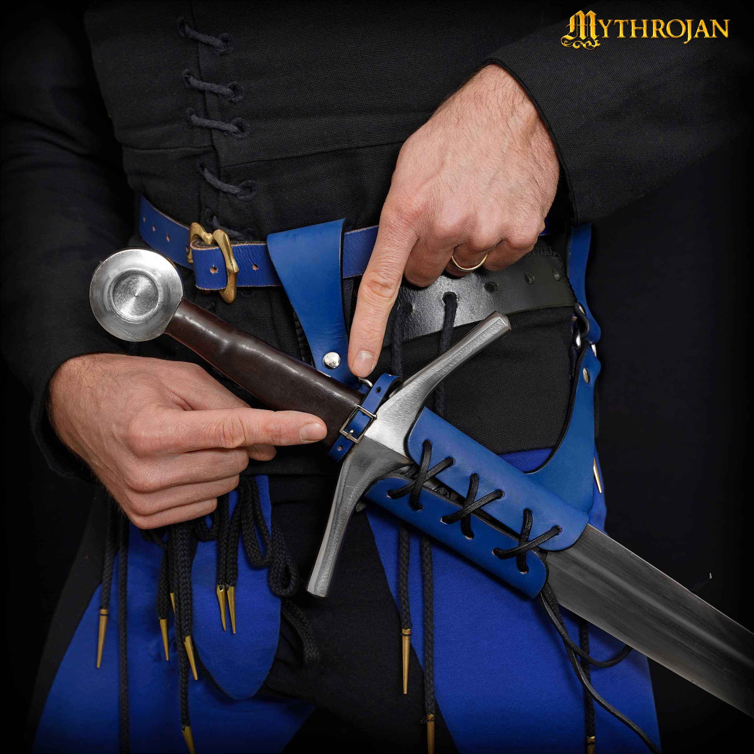 Il baltetto medievale in pelle dell'avventuriero, blu non è solo uno strumento funzionale, ma anche un accessorio che esalta l'autenticità e il dettaglio del tuo outfit. Osate distinguervi durante i vostri eventi e le vostre avventure con un pezzo che unisce durevolezza, stile e l'alta qualità artigianale garantita da Mythrojan.