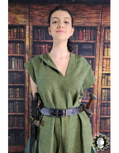 Questo tahalì in pelle nera, modello Jerome, si distingue per la sua lavorazione artigianale in 100% pelle italiana di alta qualità. Il suo design medievale è ideale per chi cerca di aggiungere uno stile autentico al proprio guardaroba, sia per eventi di rievocazione, fiere o semplicemente per completare quel look unico che ti distingue.