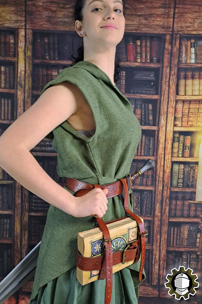 Il modello Tarryon è progettato per essere appeso comodamente alla cintura, offrendo un modo pratico per portare i tuoi libri, rotoli o quaderni. Immagina la comodità di avere le tue letture preferite a portata di mano mentre ti sposti per la città o ti immergi in un mare di storie. Questo portabiblioteca non è solo un accessorio, è una dichiarazione del tuo amore per la lettura e un omaggio ai tempi di cavalieri e leggende.