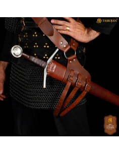 Tahalí medieval in cuoio marrone per appenderia spada, mano destra