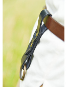 Questo accessorio non solo aggiunge un tocco distintivo, ma ti permette anche di elevare il tuo carattere medievale con un elemento che riflette la qualità e l'autenticità della pelle naturale, con piccole variazioni proprie del materiale. L'attenzione ai dettagli nella finitura delle superfici e dei bordi ne consolidano il carattere unico, rendendo ogni cintura un pezzo esclusivo. Pur essendo ispirato all'universo dell'epoca, la sua versatilità e stile lo rendono un complemento indispensabile per ogni amante del mondo medievale e della sua estetica ribelle.