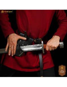 Lasciati trasportare dallo spirito dell'epoca medievale con questo impressionante tahalí in cuoio nero, pensato appositamente per guerrieri mancini che amano immergersi in giochi di ruolo ed eventi LARP della SCA. Progettato con un aspetto robusto e autentico, questo accessorio combina funzionalità e stile per rendere la tua esperienza di gioco ancora più immersiva.