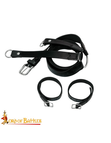 Tahalí medieval in cuoio per appenderci le spade, colore nero
