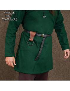 Questo gancio in pelle con anello intrecciato si scivola facilmente sulla maggior parte delle cinture, permettendoti di accedere rapidamente ai tuoi oggetti senza complicazioni. Il suo stile rustico e solido offre una sensazione di fiducia e praticità, perfetto per attori, ricostruttori o appassionati dell'estetica medievale.