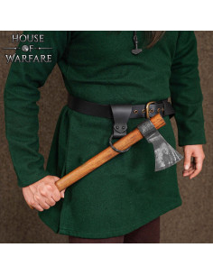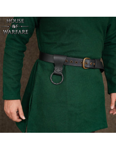 Cerchi un pezzo che combini funzionalità e uno stile autentico d'epoca? Questo supporto in cuoio con anello intrecciato nero è perfetto per gli amanti dell'estetica medievale, vichinga o rinascimentale che necessitano di mantenere strumenti o armi sempre a portata di mano.