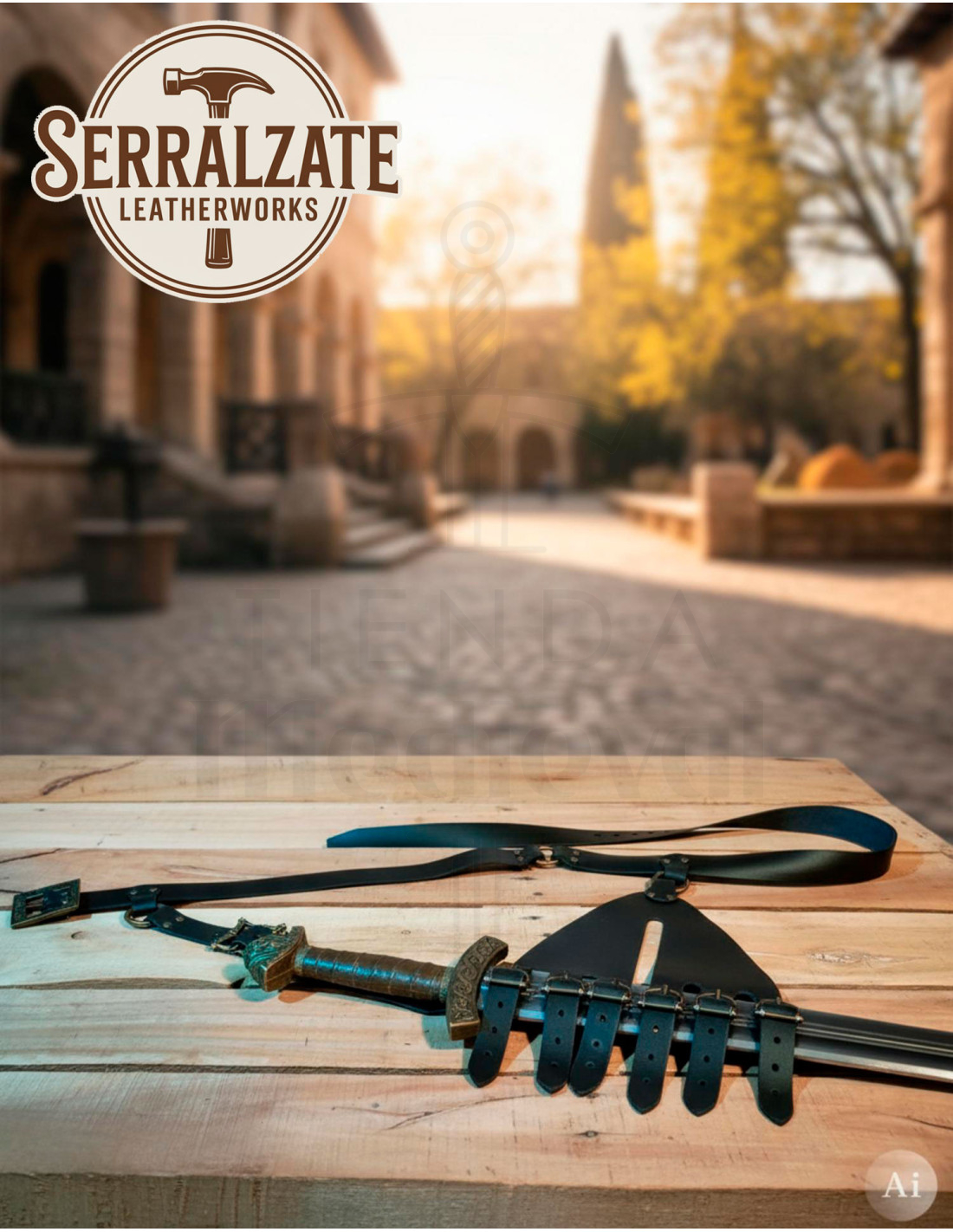 Senti la combinazione perfetta tra autenticità e funzionalità, pensata per mantenere sempre sicura e visibile la tua spada da parata.
