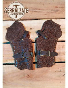 Realizzata a mano in Spagna da artigiani qualificati, questa cartuccera in pelle sbalzata marrone combina tradizione e resistenza, affinché tu possa portare i tuoi accessori con stile senza rinunciare alla funzionalità. La texture sbalzata non solo conferisce personalità, ma sviluppa anche una patina con l'uso, il che significa che migliora nel tempo e si adatta al tuo ritmo di vita.