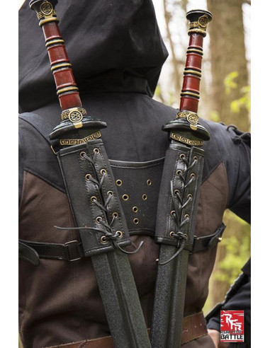 Tahalí medieval in cuoio per spade modello Crociato, colore nero