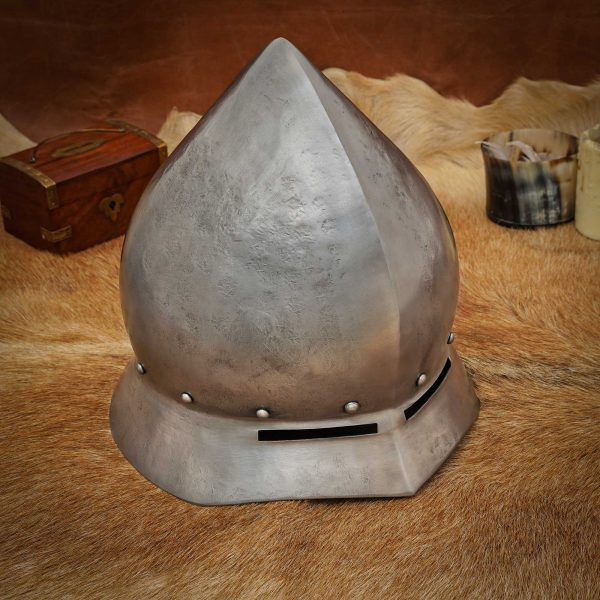 Elmo medieval Kettle in Acciaio Lucido Secolo XIV