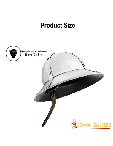 Aggiungi autenticità al tuo abbigliamento medievale con il casco medievale Kettle del XIV secolo, realizzato in acciaio di 1,6 mm. Questo modello, noto come 'cappello da guerra', combina storia e funzionalità, essendo un design popolare dal XIII al XV secolo grazie alla sua versatilità ed efficacia in combattimento.