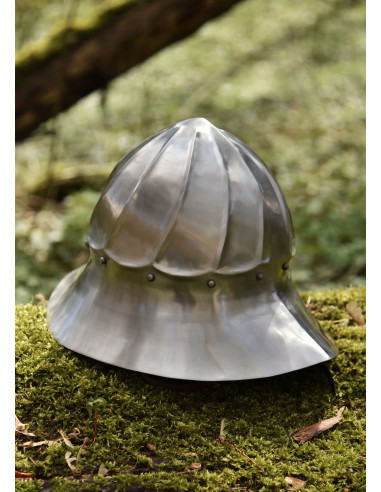 Elmo medieval Kettle in Acciaio Lucido Secolo XIV