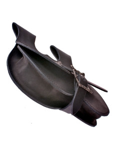Borsa medievale secoli XV-XVI in pelle (22 x 22 cm.). La borsa del rene si trova spesso nei dipinti del tardo medioevo, così come nel materiale archeologico delle borse storiche del medioevo.