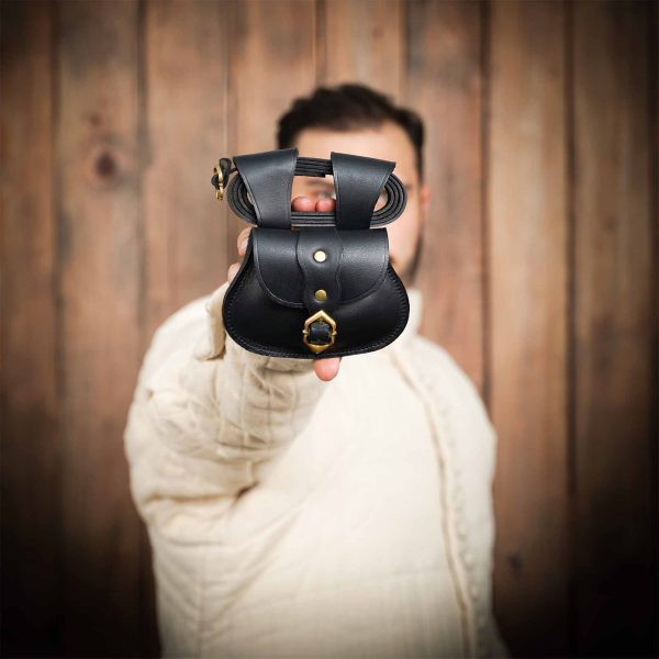 Borsa a tracolla medievale in pelle modello Jabardo, colore nero