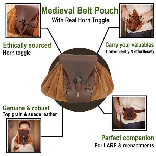 Borsa marsupio medievale in pelle modello Albrecht, colore marrone/nero