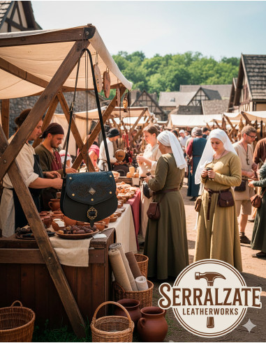 Rendi ancora più imponente il tuo outfit medievale con la borsa in pelle nera modello Udo. Questa borsa è perfetta per portare con te i tuoi oggetti essenziali mentre cammini per la città, visiti un mercato medievale o anche durante una rievocazione storica. I suoi due manici ti permettono di appenderlo facilmente alla cintura, mentre la sua chiusura con fibbia in ottone assicura che i tuoi effetti personali siano al sicuro.