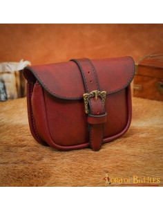 Borsa in pelle con fibbia celtica in ottone, finitura rossastra
