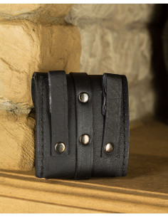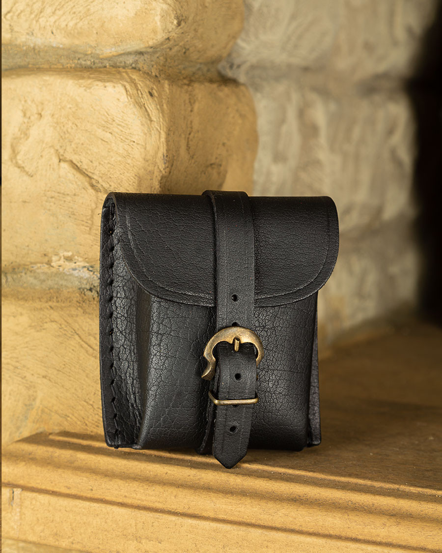 Borsa medievale per cintura con chiusura a corno, colore nero