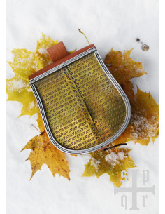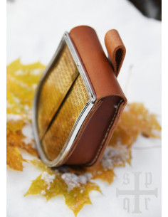 Richiesta su Borsa medievale in pelle marrone con frontale in ottone (19,5x14 cm.)