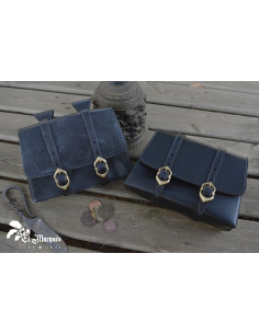 Marsupio medievale con chiusura a cordoncino, vera pelle scamosciata