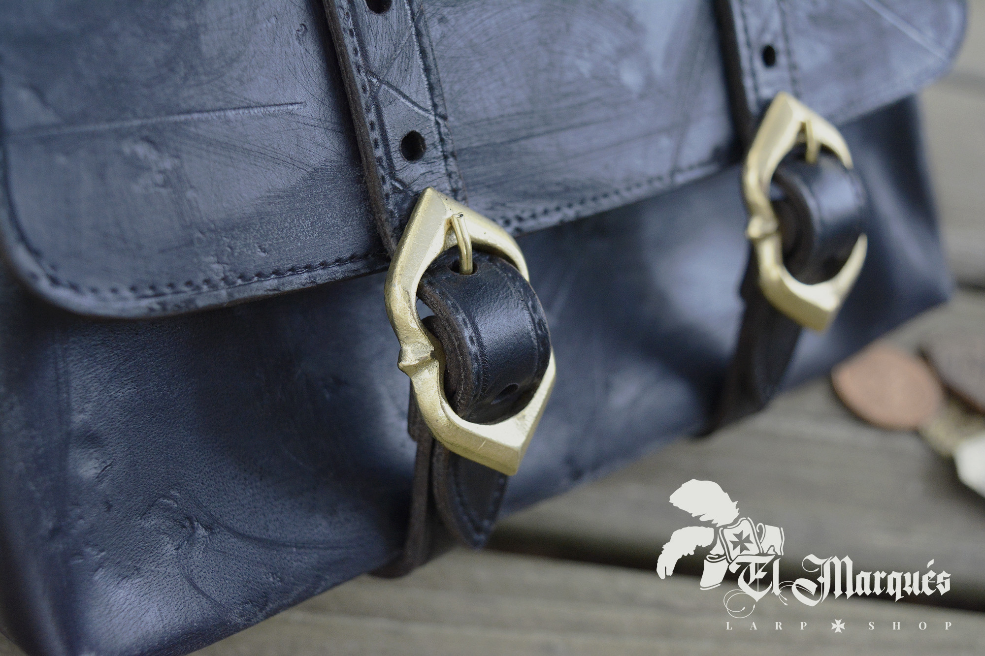 Borsa medievale limosnera in pelle scamosciata con chiusura a bottone, colore azzurro argento