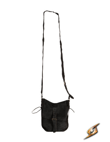 Borsa a tracolla medievale in pelle scamosciata, colore nero