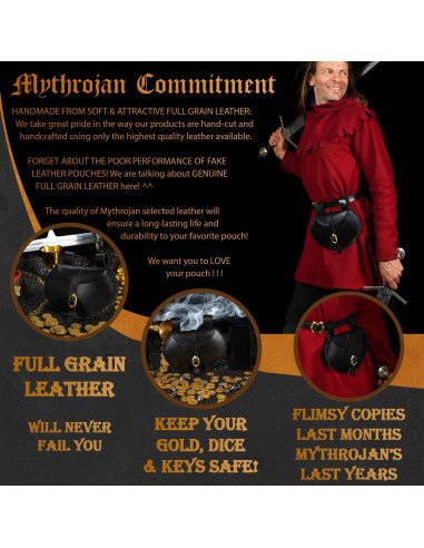 Cerchi un modo autentico e pratico per portare i tuoi essenziali nelle tue avventure medievali? Questo marsupio in pelle, ispirato alla figura di Hrothgar, il leggendario re vichingo, è il compagno perfetto per catturare l'essenza di epoche passate con stile e funzionalità.