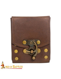 Marsupio medievale con chiusura a cordoncino, vera pelle scamosciata