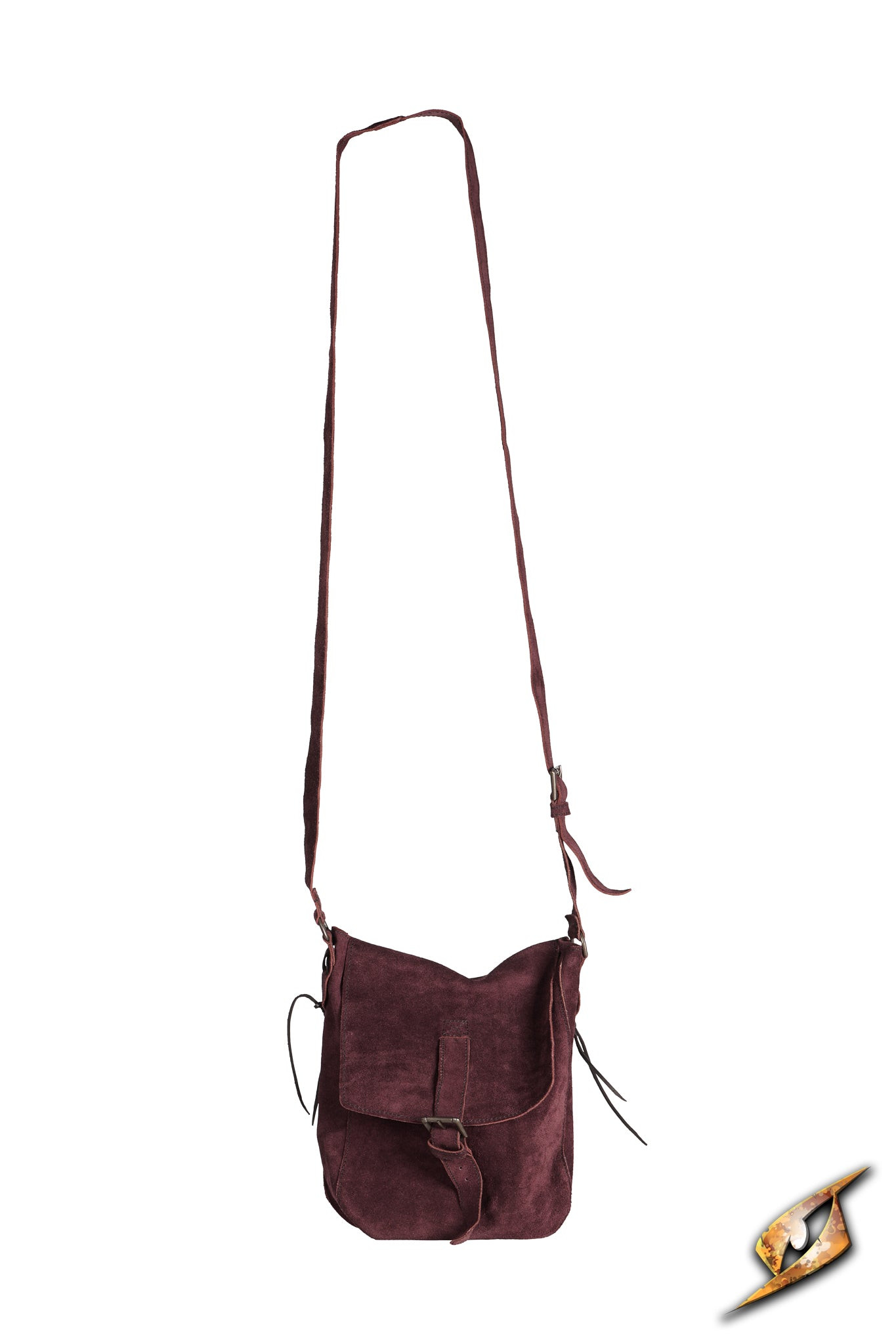 Borsa a tracolla medievale in pelle scamosciata, colore bordeaux