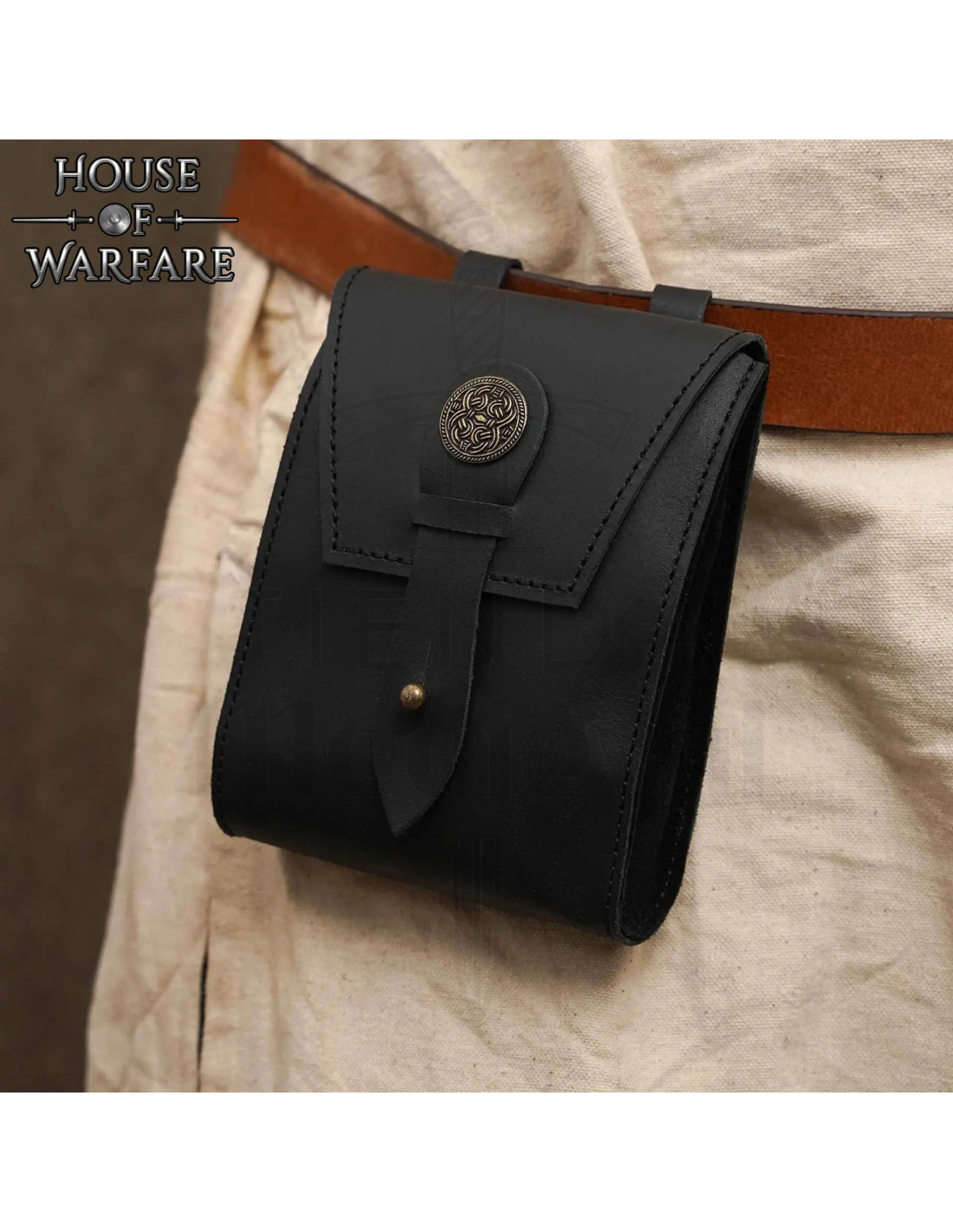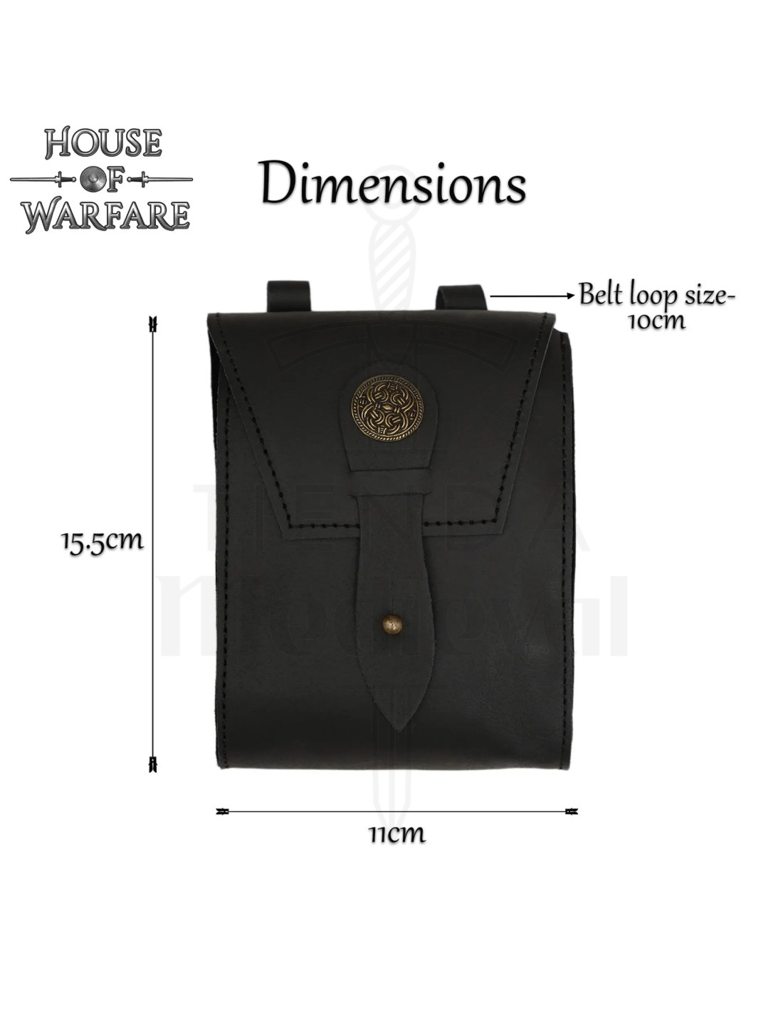 Le due cinghie posteriori rinforzate permettono di fissarlo a cinture larghe e strutture da battaglia o ricreazione, adattandosi con fermezza e senza muoversi. All’interno ci stanno l’essenziale: monete, dadi, reliquie piccole, biglietti segreti o un telefono compatto, tutto ordinato e protetto all’interno di una silhouette pulita e strutturata.