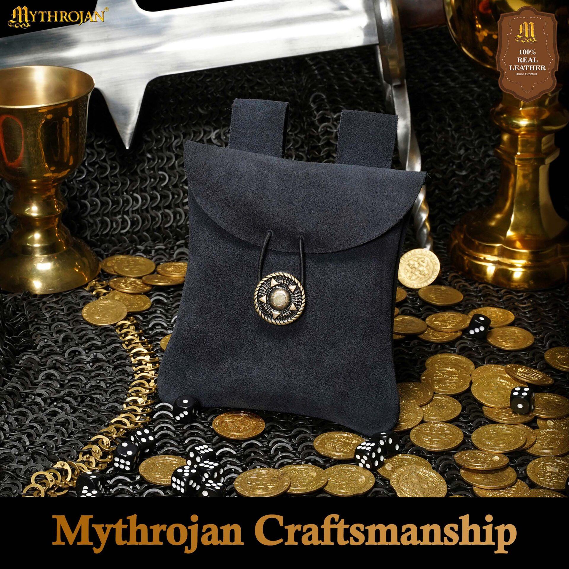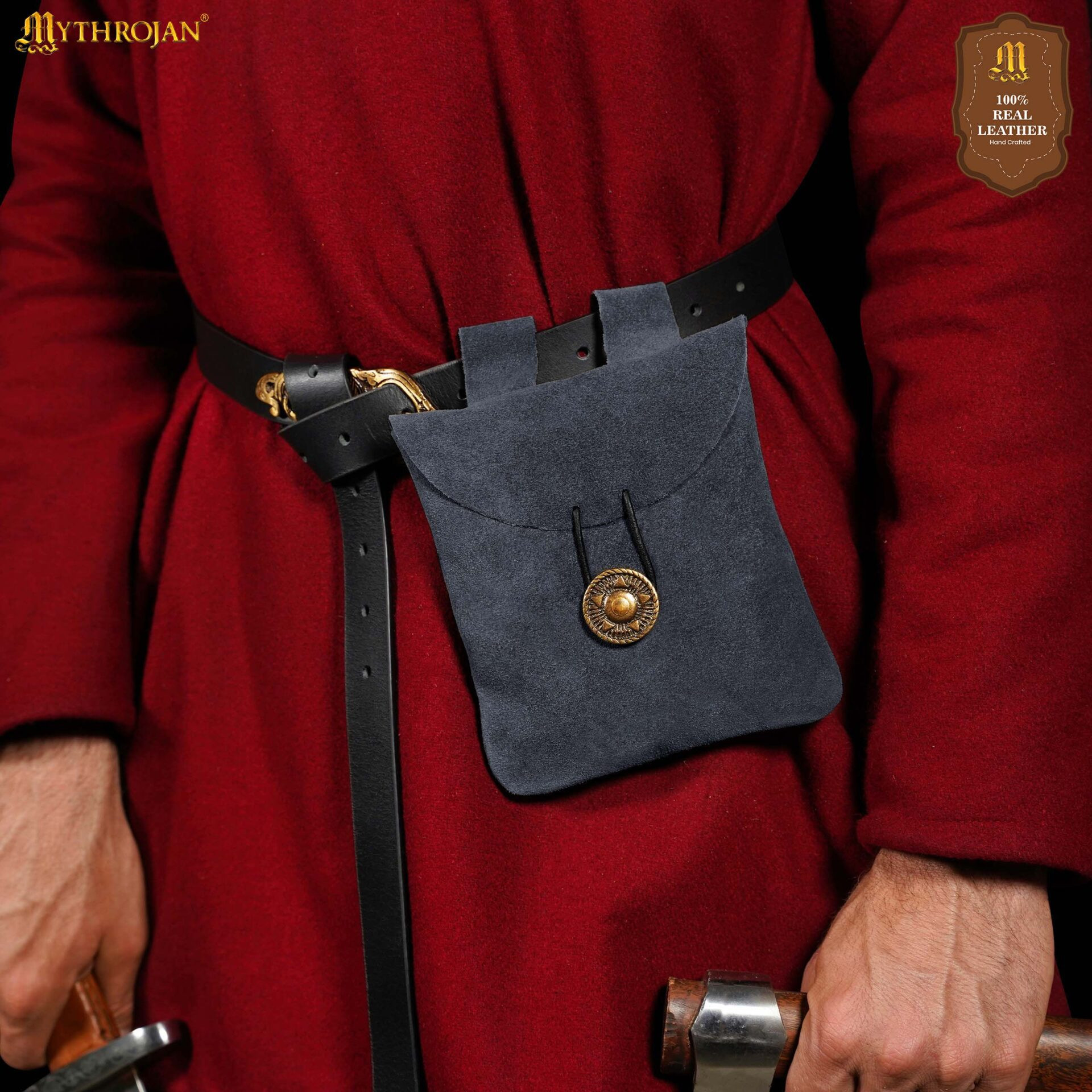 Borsa marsupio medievale in pelle scamosciata, colore blu