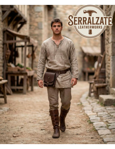 Realizzata in Spagna con pelle della migliore qualità, ogni pezzo trasmette solidità e un tocco piacevole, evolvendo con l'uso per guadagnare carattere proprio. Questa qualità si nota nella finitura e nella resistenza al ritmo quotidiano, quindi è perfetta sia per ricreatori storici, che per chi desidera un accessorio con personalità per la vita di tutti i giorni o eventi speciali.