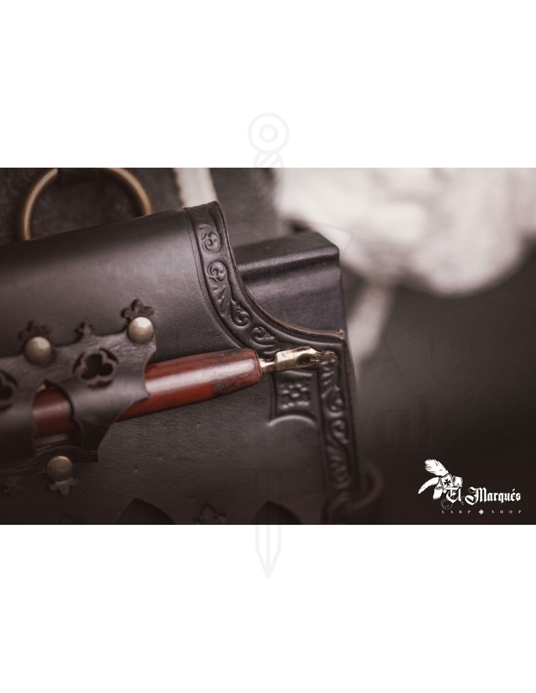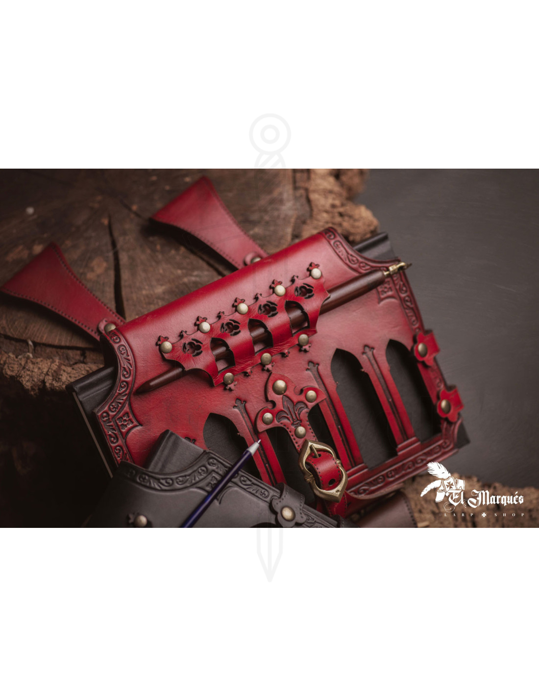 Progettato per chi scrive e viaggia, il Portalettore medievale modello Guardiano dei Pensieri accompagna le tue note con stile e funzionalità, proteggendo ciò che più valorizzi senza rinunciare a un aspetto curato. La sua finestra frontale permette di vedere e riconoscere il quaderno senza aprirlo, così puoi accedere rapidamente a idee e mappe, mentre le incisioni decorative e le borchie metalliche conferiscono una presenza autentica che si integra con abiti di ricostruzione storica, eventi di ruolo o l'uso quotidiano.