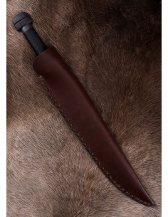 Con una lunghezza totale di 50,5 cm e una lama di 35 cm, il Viking seax o scramasax è un modello di dimensioni considerevoli, che lo rende un magnifico pezzo decorativo per qualsiasi collezione di articoli vichinghi. Il suo peso di 720 gr assicura un giusto equilibrio nella manovrabilità, e il suo baricentro a 7,5 cm dalla guardia lo rende maneggevole.