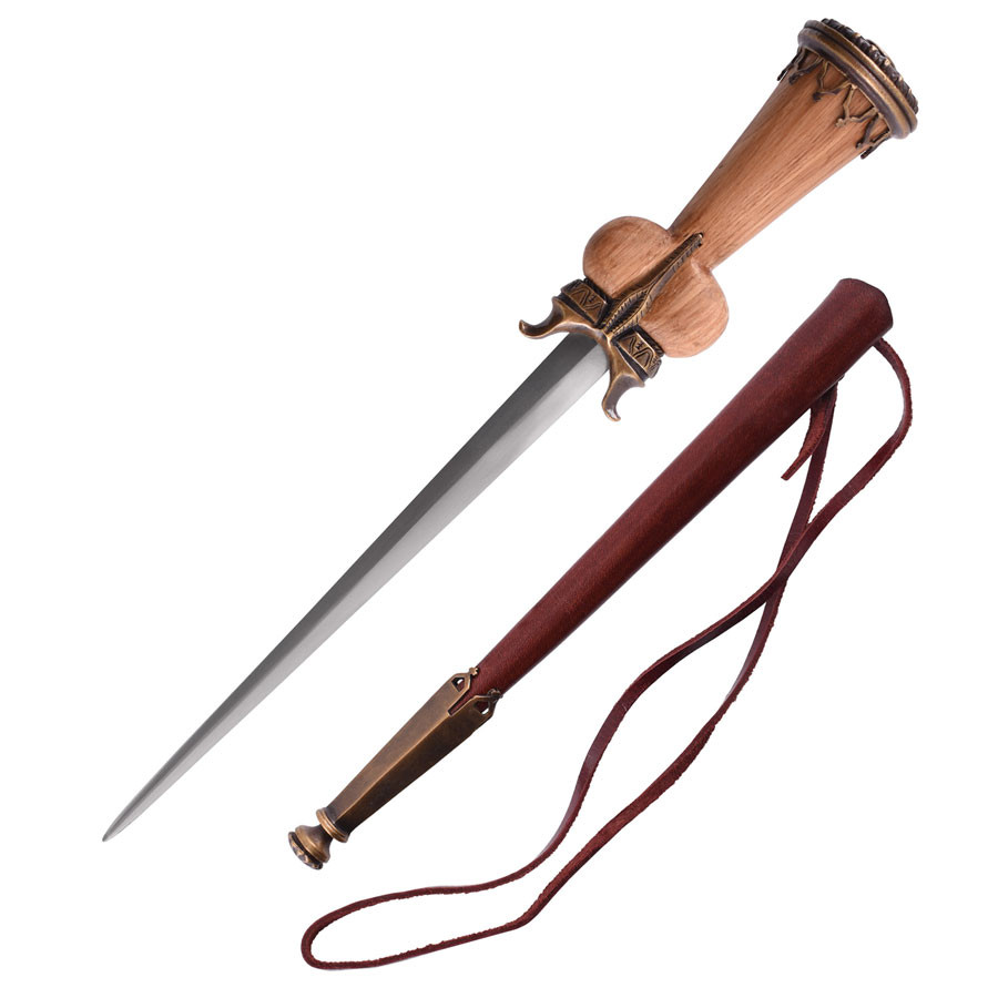 Si prega di notare che questo pugnale tardo medievale non è un'arma pronta per la battaglia. È concepito come oggetto da collezione o per la decorazione, l'esposizione e non è adatto per la rievocazione del combattimento. Oltre alla sua qualità come oggetto da collezione, si adatta perfettamente anche come accessorio, ad esempio per completare il tuo costume medievale.