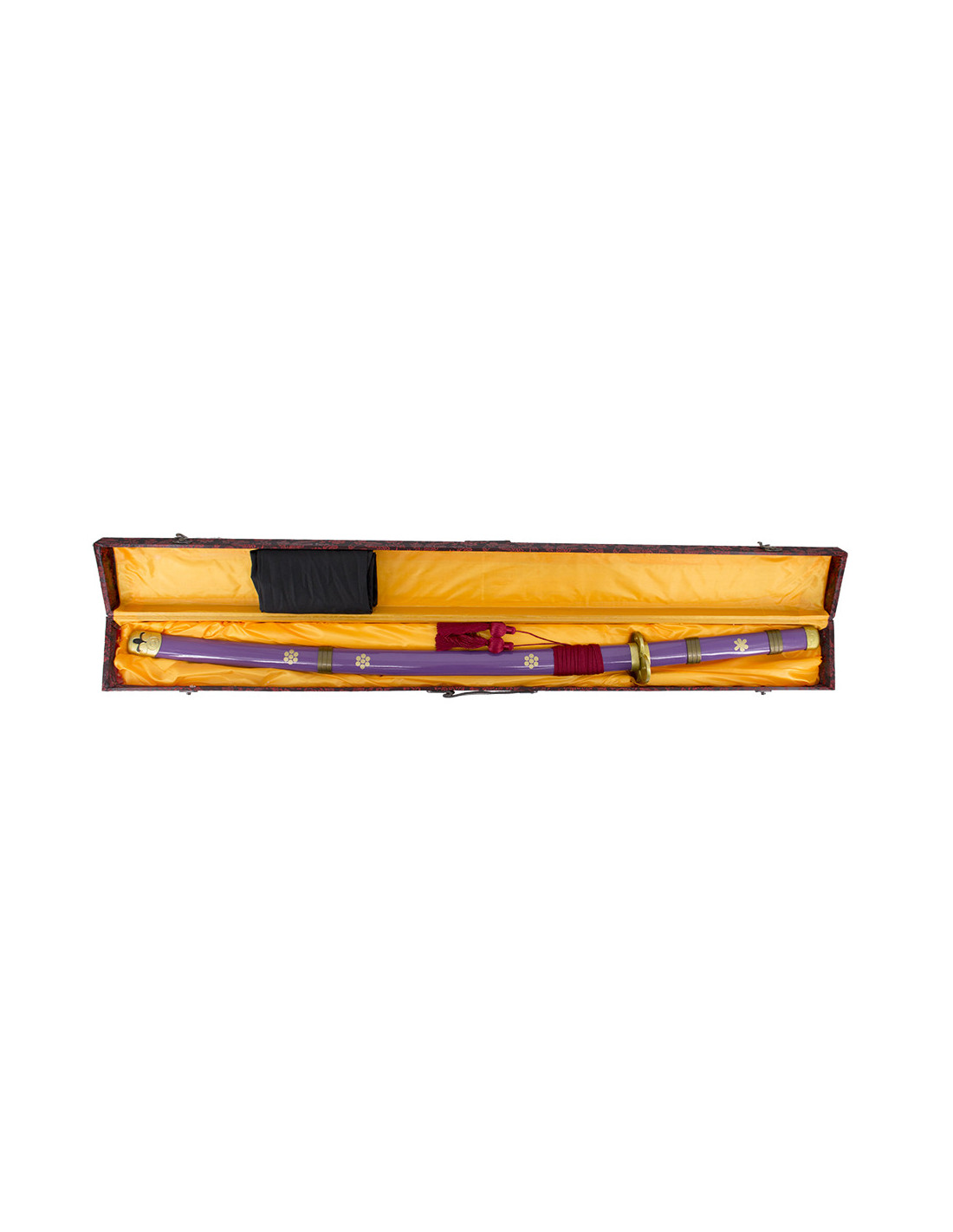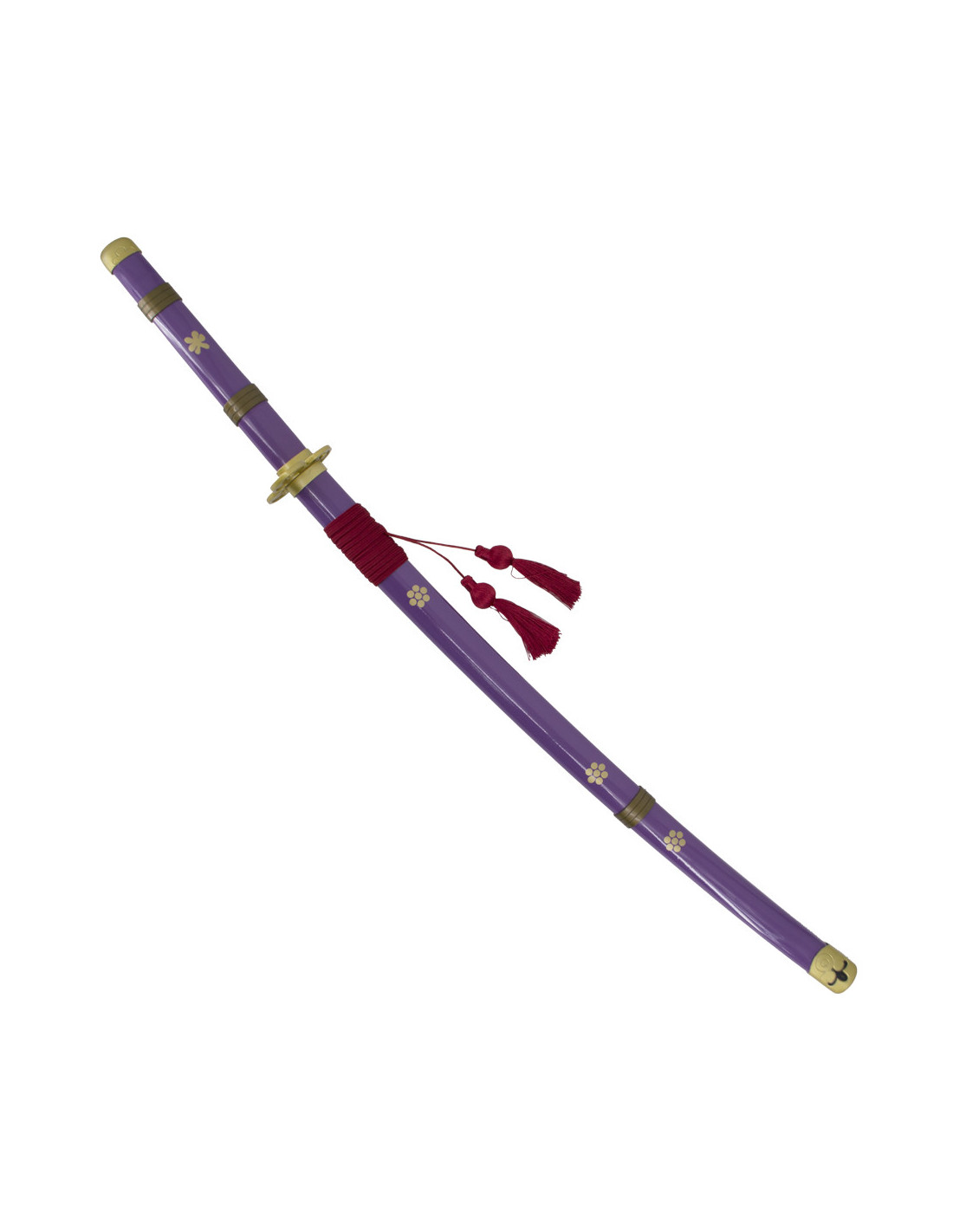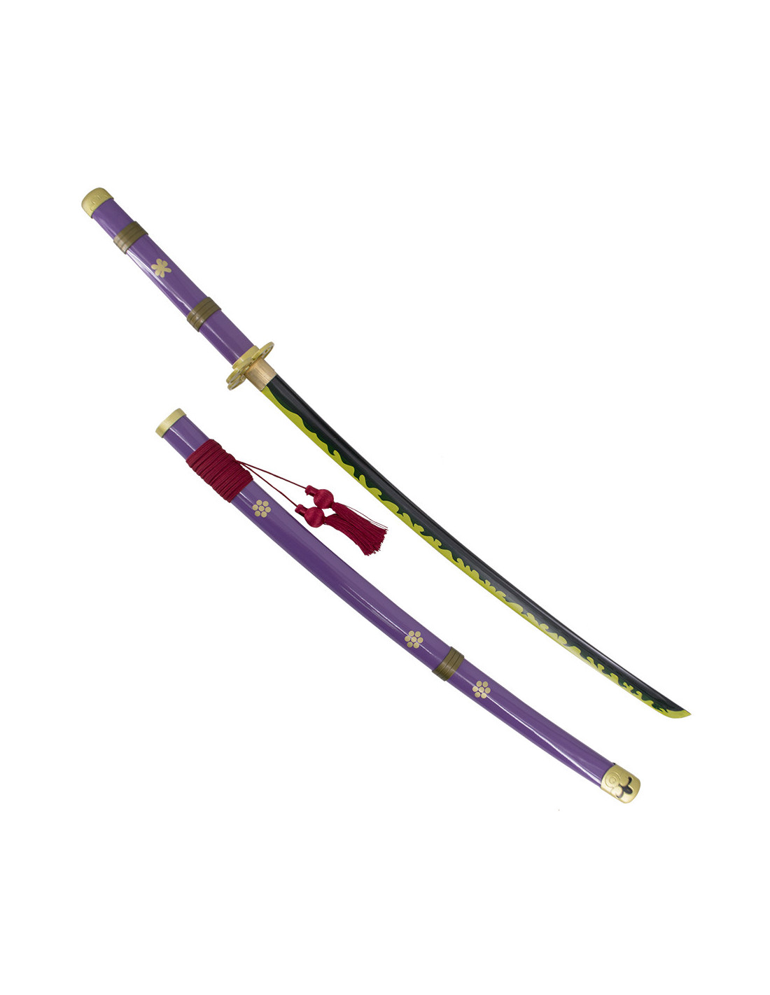 Lo tsuba a forma di trifoglio e la custodia scura aggiungono eleganza alla spada. Inoltre, la tsuka è diventata di colore lilla a partire dal capitolo 972 e volume 96, rendendola una riproduzione fedele alla storia e permettendoti di sentirti parte dell'avventura di One Piece.