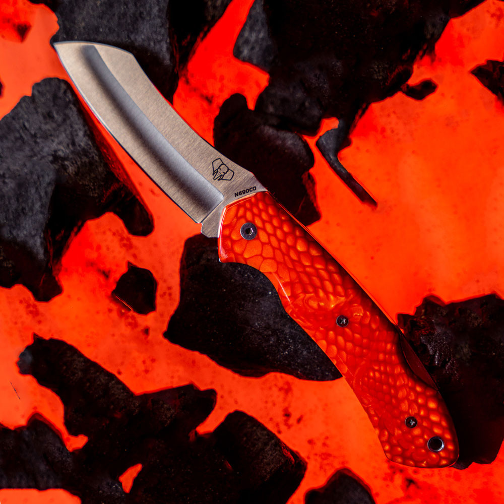 La sua lama satinata, con una finitura lucida che ne esalta la bellezza, non è solo un piacere per gli occhi, ma garantisce anche prestazioni superiori. Realizzato in acciaio Böhler N690CO, questo coltello offre una durezza impressionante che assicura un'eccezionale durata, permettendoti di affrontare qualsiasi sfida con fiducia.