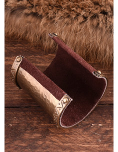 Se vuoi aggiungere un tocco di stile celtico al tuo abbigliamento quotidiano, allora non lasciarti sfuggire questo braccialetto celtico in ottone. Questo bracciale rigido largo è realizzato in ottone di alta qualità e ha una finitura martellata per un aspetto autentico e rustico. Inoltre, ha uno strato di pelle scamosciata all'interno per una presa più confortevole.