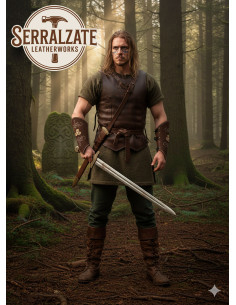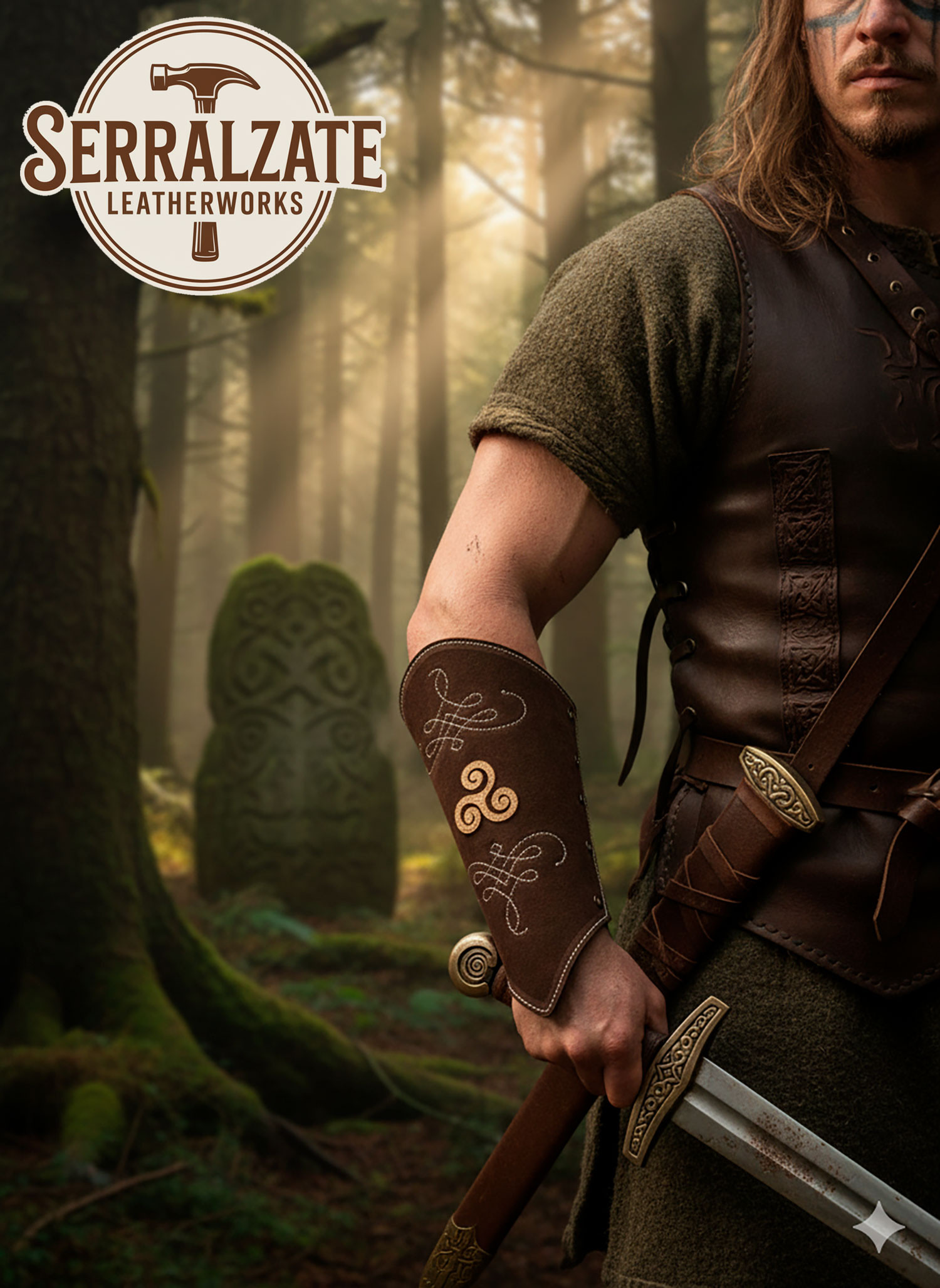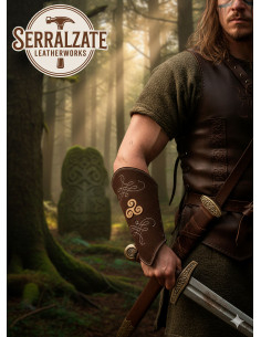 Bracciale medievale in pelle con design a rilievo di nodi celtici, colore verde