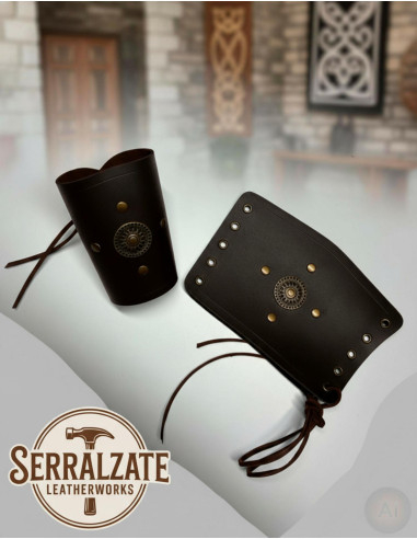 La coppia di bracciali a ruota celtica, neri combina una ruota celtica in ottone metallico con vera pelle lavorata a mano, per offrire un equilibrio tra presenza visiva e comfort nel indossarli. Ogni dettaglio è stato elaborato da rinomati artigiani in Spagna, il che garantisce una finitura curata che si percepisce al tatto e alla vista, senza risultare ingombrante.