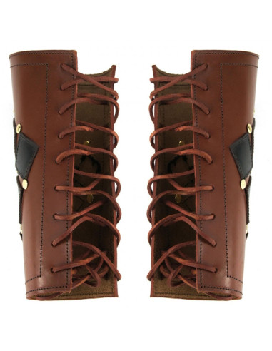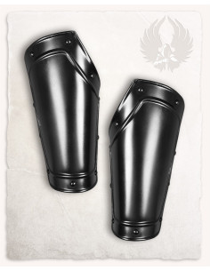 Misurando 26 cm di lunghezza e 21 cm di larghezza a un'estremità e 17 cm all'altra, questi bracciali si adattano perfettamente alle tue braccia, aggiungendo un tocco di stile e protezione al tuo abbigliamento medievale.