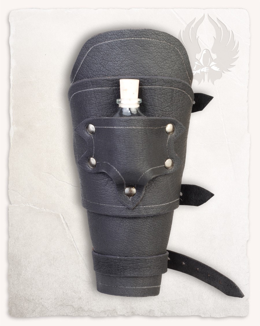 Bracciale medievale in pelle nera con fondina, modello Geralt