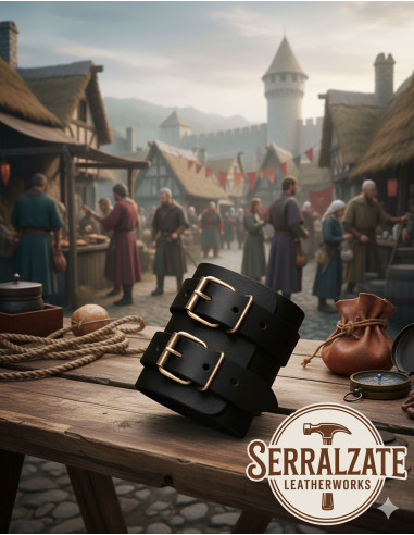 La sua combinazione di colori marrone e nero non solo completa il tuo look da barbaro, ma aggiunge anche un tocco di autenticità e rusticità al tuo outfit. Con questi bracciali, non solo ti proteggi dai colpi nemici, ma proietti anche un'immagine imponente e spericolata, assicurando che i tuoi avversari sappiano che sei pronto per la battaglia.