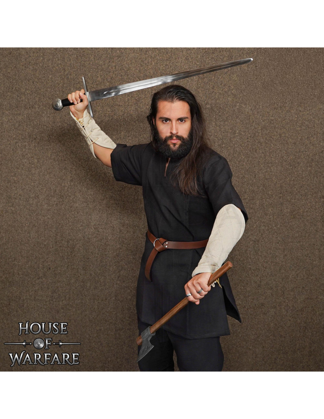 Ogni paio è realizzato con cuciture visibili e lavorazione curata, garantendo un aspetto rifinito e una resistenza pensata per un uso frequente in SCA, reenactment e teatro di combattimento. Inoltre, la finitura testurizzata del tessuto e il tono crema si integrano con una varietà di costumi storici e di fantasia.