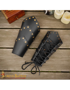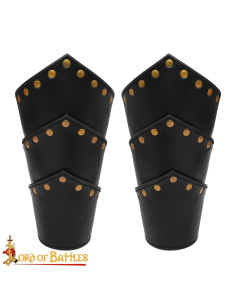 Bracciali medievali in pelle nera, dettagli in ottone