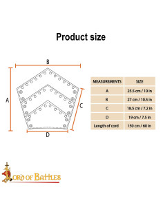 Le borchia metalliche dorate, posizionate seguendo una linea a V sul bordo superiore, creano un punto focale che cattura l'attenzione, mentre il colore nero della pelle offre versatilità per abbinarsi a molti look, dalle armature leggere agli abiti urbani con ispirazione storica.