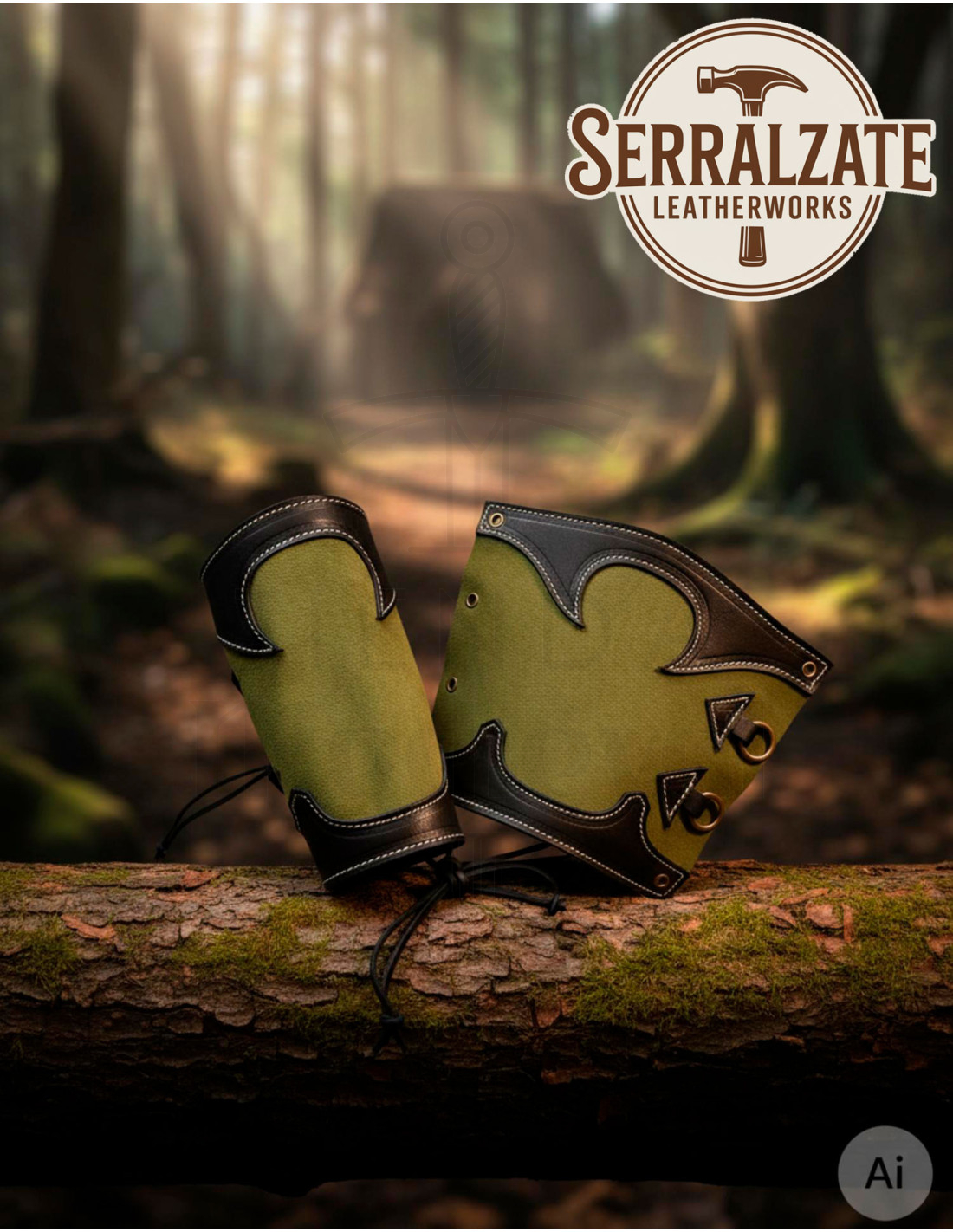 Include la coppia, progettata per un equilibrio estetico e pratico, in modo da ottenere protezione senza perdere tatto o destrezza. Il contrasto tra pelle scura e camoscio verde non solo armonizza con i paesaggi boschivi e fornisce un camuffamento discreto, ma riflette anche l'impegno e la resistenza del Guardaboschi, un ruolo classico di protettore e tracciante che vive sul confine del regno, sorvegliando sentieri e boschi proibiti.