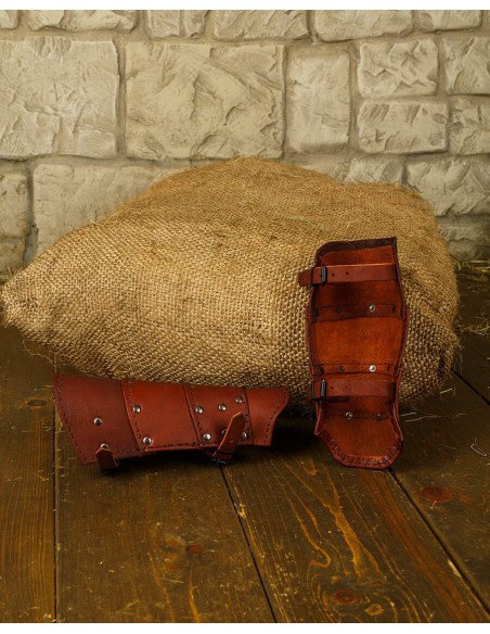 Questo paio di protezioni per avambracci è pensato per chi cerca un pezzo con carattere, che combini funzionalità e estetica. Si integra naturalmente in ricreazioni storiche, eventi tematici o in qualsiasi insieme che cerchi quell'aria lavorata e autentica, apportando presenza senza sacrificare comfort.